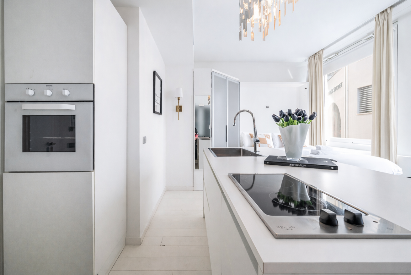 L’appartamento dispone di un luminoso open space climatizzato, con una cucina a isola completamente accessoriata, inclusa la lavastoviglie. Il letto matrimoniale si trasforma all'occorrenza in un comodo divano in pelle, mentre la zona relax è dotata di Smart TV, Wi-Fi, divano letto singolo, macchina del caffè tostapane e bollitore tutto esclusivamente a marchio SMEG. Un bagno di design dal gusto sofisticato completa l'appartamento.